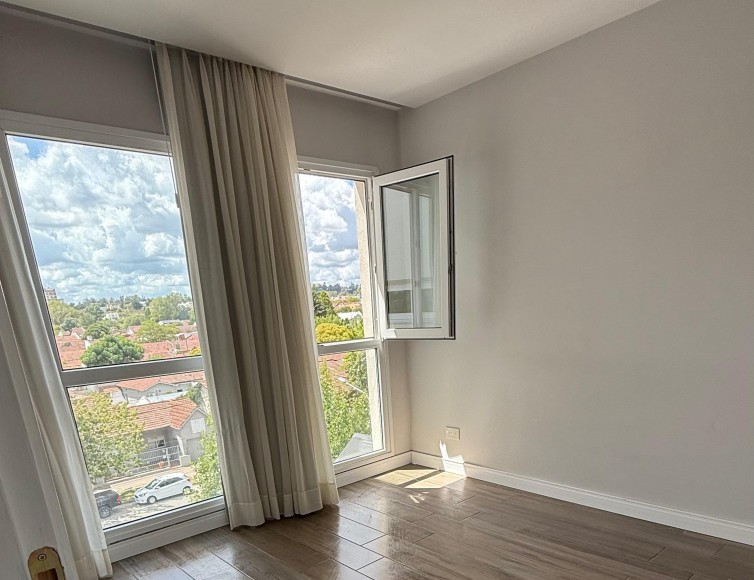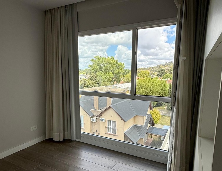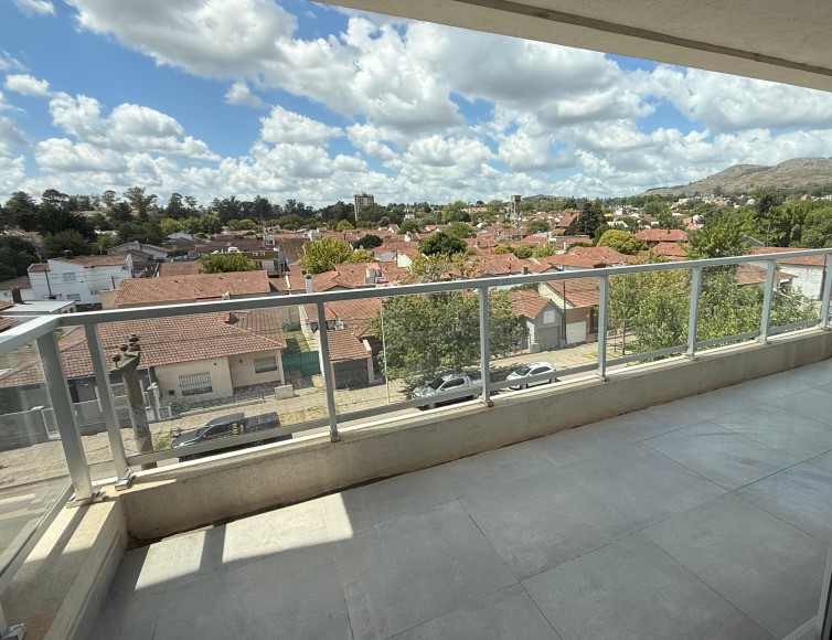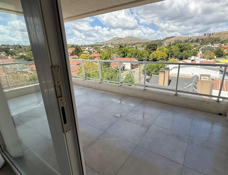Departamento en venta con balcón aterrazado en L y hermosa vista de las sierras. Av. Bolívar al 300. 2 habitaciones, 2 baños. Una de las habitaciones con vestidor y baño en suite. Living comedor. Luminosa cocina separada con barra de desayuno. Cochera y baulera. Calefacción por losa radiante. SUM.